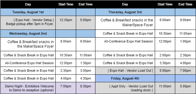 Expo Hall Setup and Breakdown Schedule